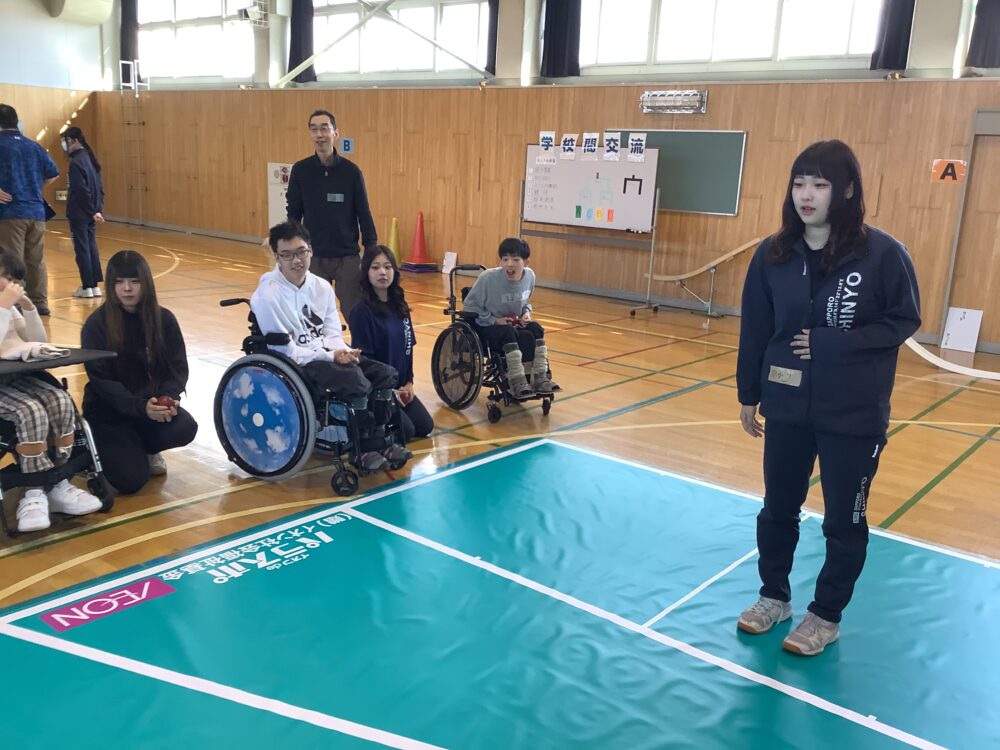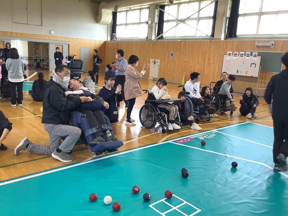 気温が下がり秋から冬に季節が変わり始めている11月、体育の授業でレクリエーションスポーツを選択した生徒たちが、真駒内養護学校の生徒さんたちとパラスポーツを通した学校間交流を行いました。