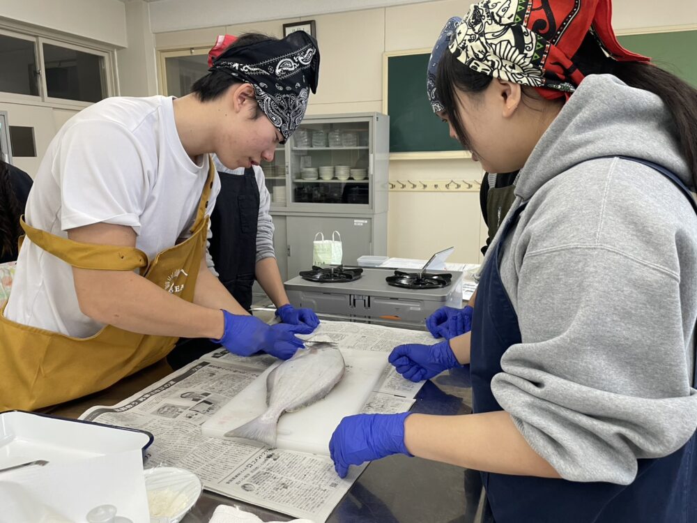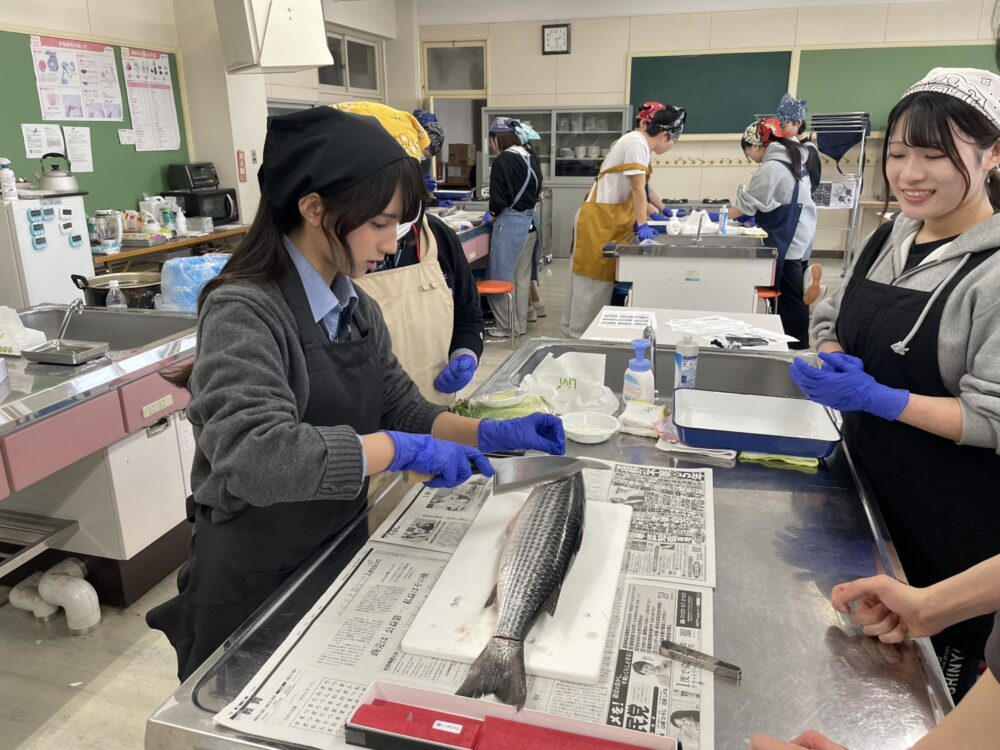 授業では、実際に獲れたての魚を用意していただき、多くの生徒が“人生初”の魚の捌きに挑戦しました。その後は、自分たちで捌いた魚をムニエルにして試食。「思っていたより難しい」「時間がかかるし大変」「可哀想だけど、命をいただくってこういうことなんだ」など、さまざまな声が聞かれ、食べ物の“命”について改めて向き合う機会になりました。