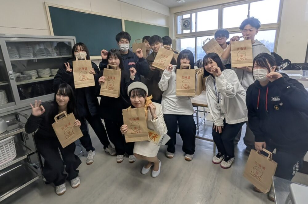 12月2日(火)、学校設定科目の中で人気の『食育学』の授業で、道産米に関する外部連携授業を行いました。