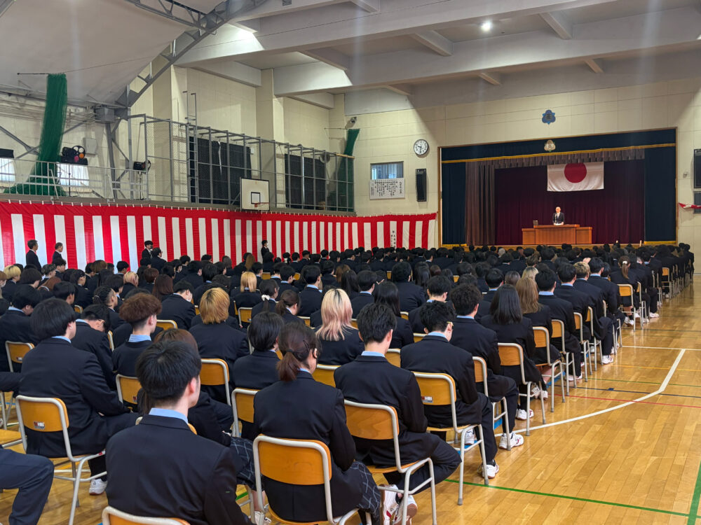また、式への参加態度から3年生、2年生ともに、1つ学年が上がった成長が形としてみられ、特に講話を聞く生徒の表情の真剣さなどが印象的でした。